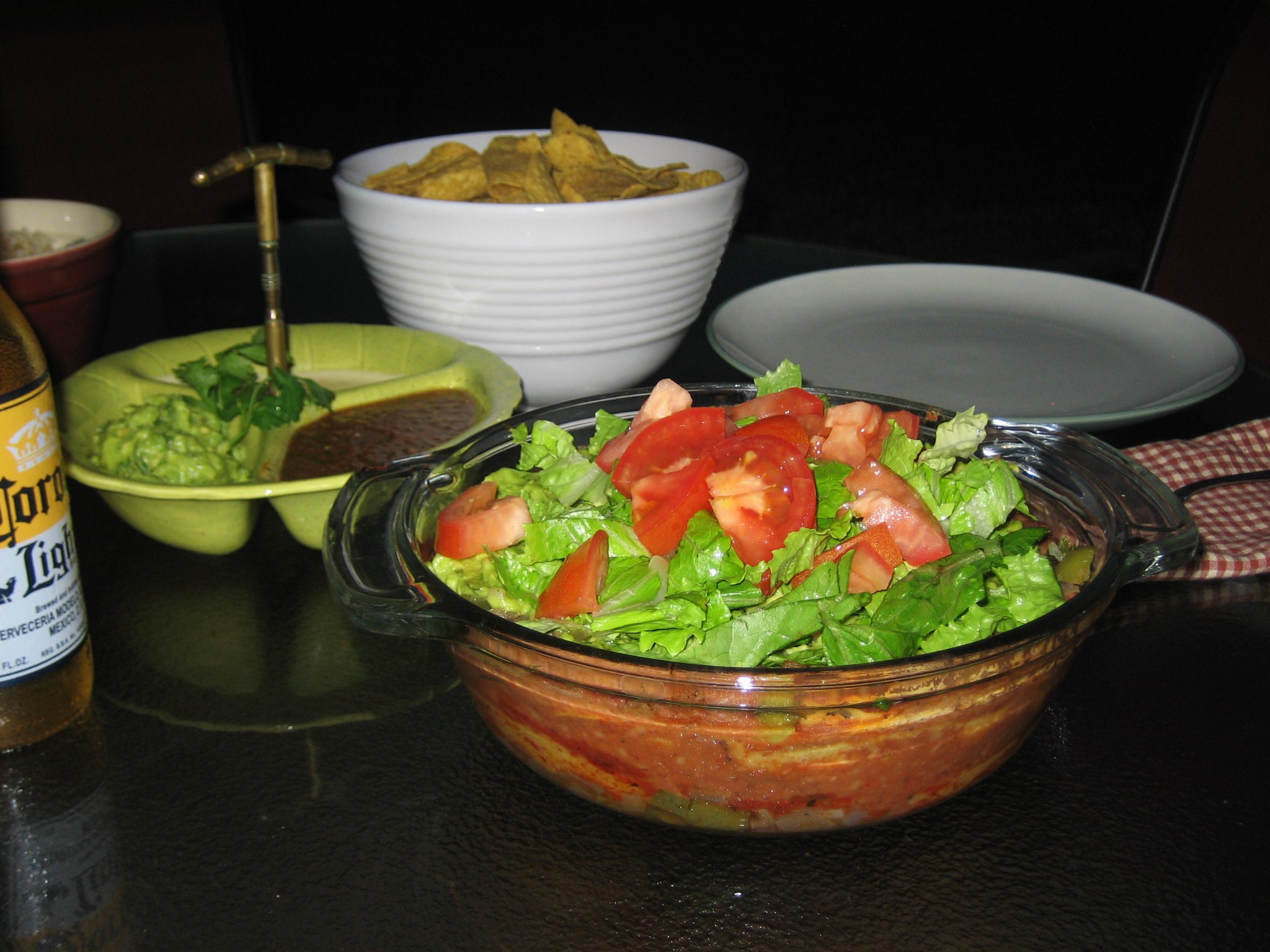 So I whipped up a mexican casserole, cashew cheese dip, rice, salsa, and gaucamole. Then popped open a couple of Coronas with a twist of lime. Boy was my kitchen a mess, but my husband was feeling like a winner again!