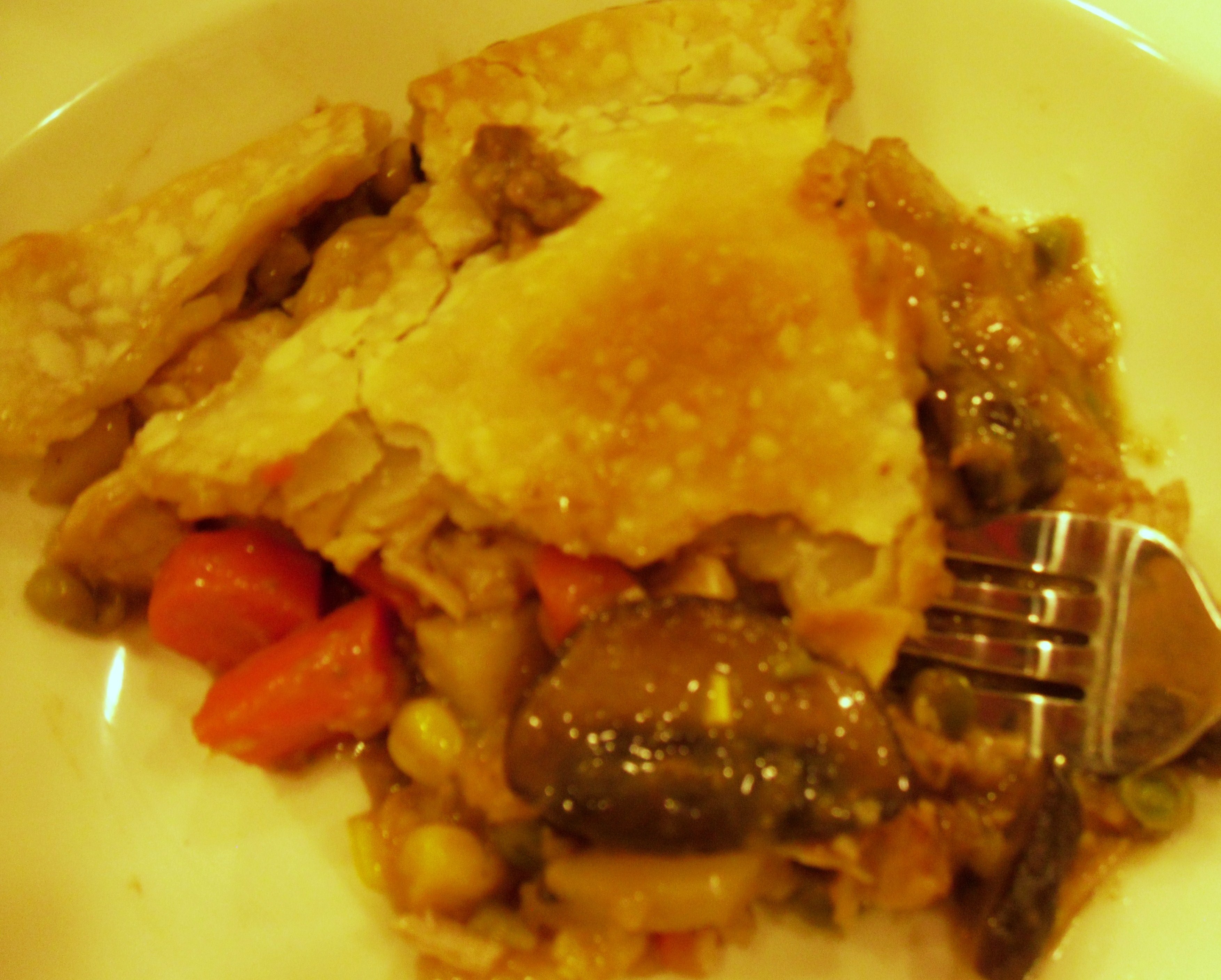 For Vegans: Use 1 can drained kidney beans and 1 can drained butter beans in place of meat. The kidney beans add a nice firmness and color and the butter beans are big and creamy and well, buttery. The combination makes a very tasty veggie pot pie.  If you have a favorite vegan meat substitute, this could also be used.