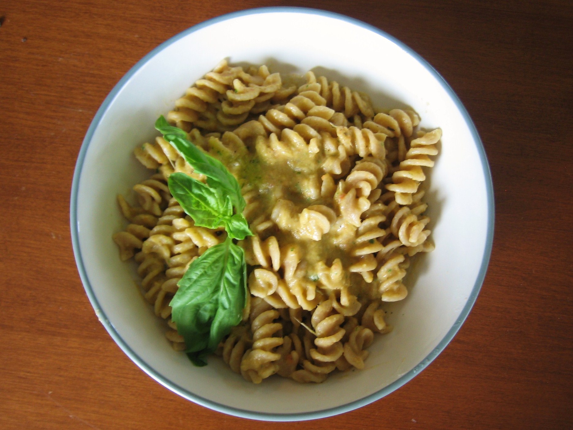 Toss with pasta immediately out of the boiling water. Garnish with a little chopped basil if desired.