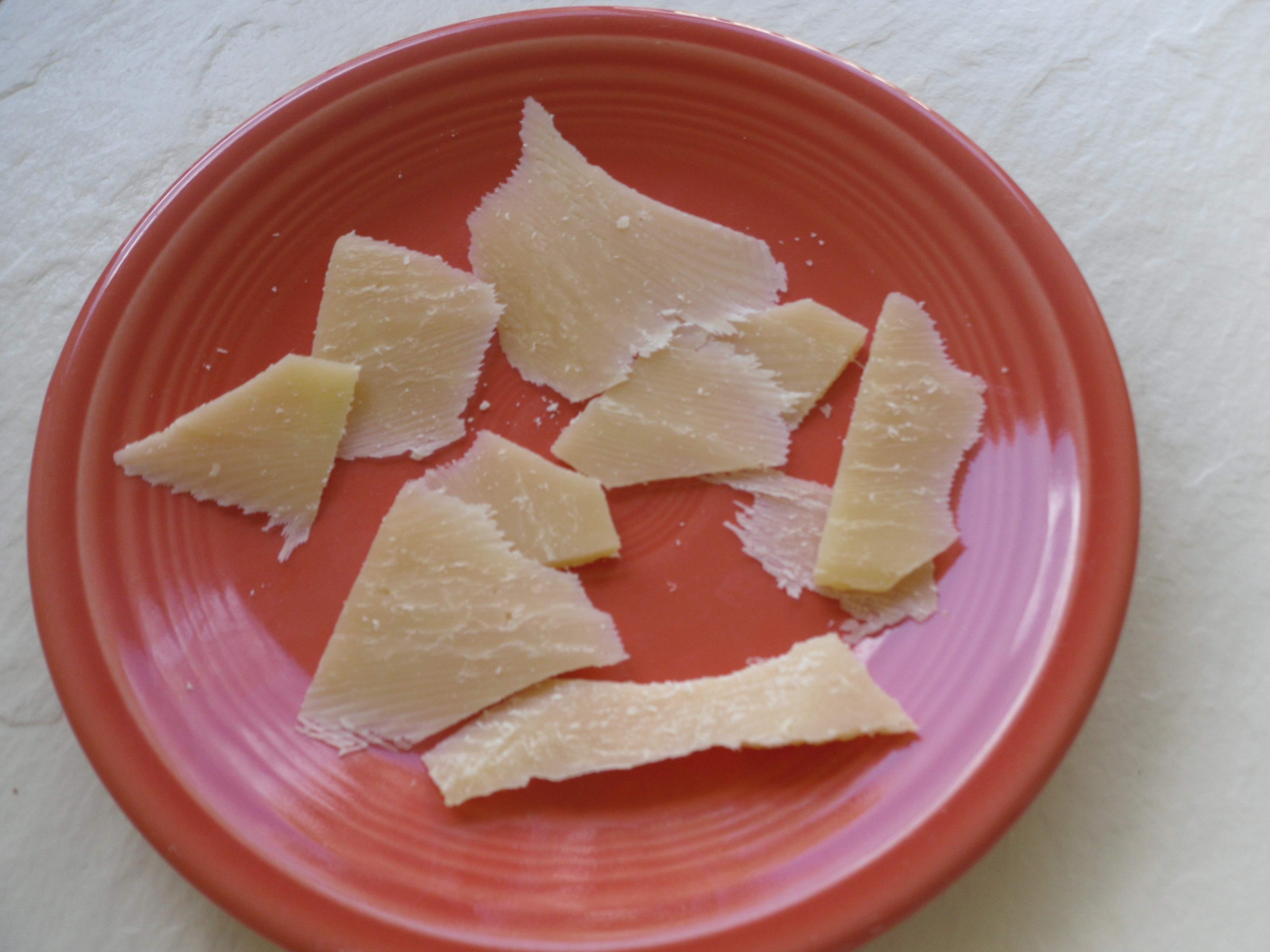 Parm "Shards," simply slice random thin pieces of Parmasan cheese and lay on a microwavable plate
