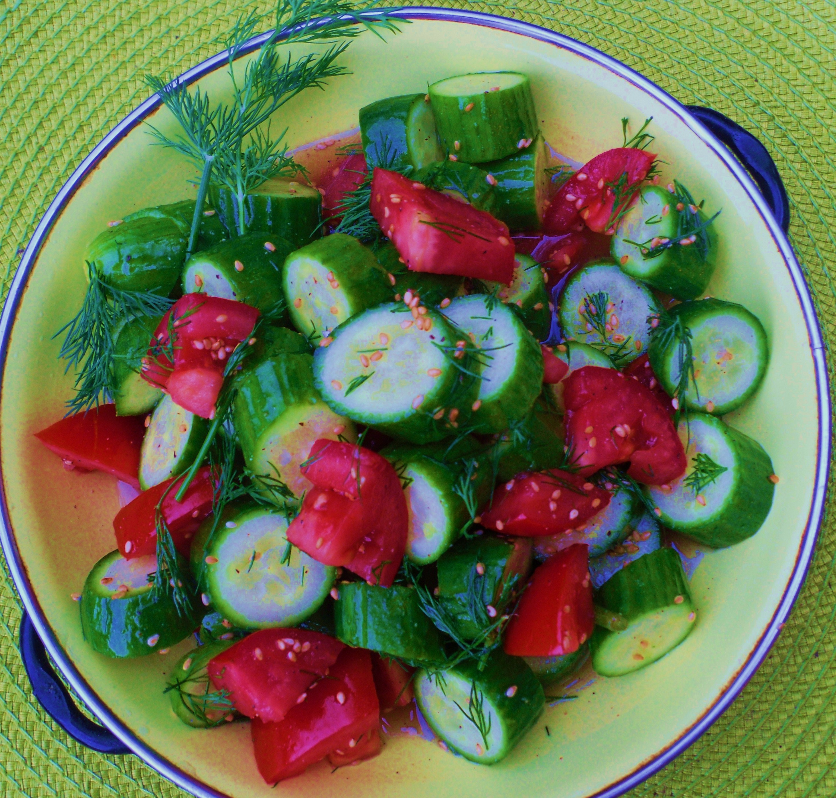 Becky’s Crunchy Asian Cucumbers and Tomatoes