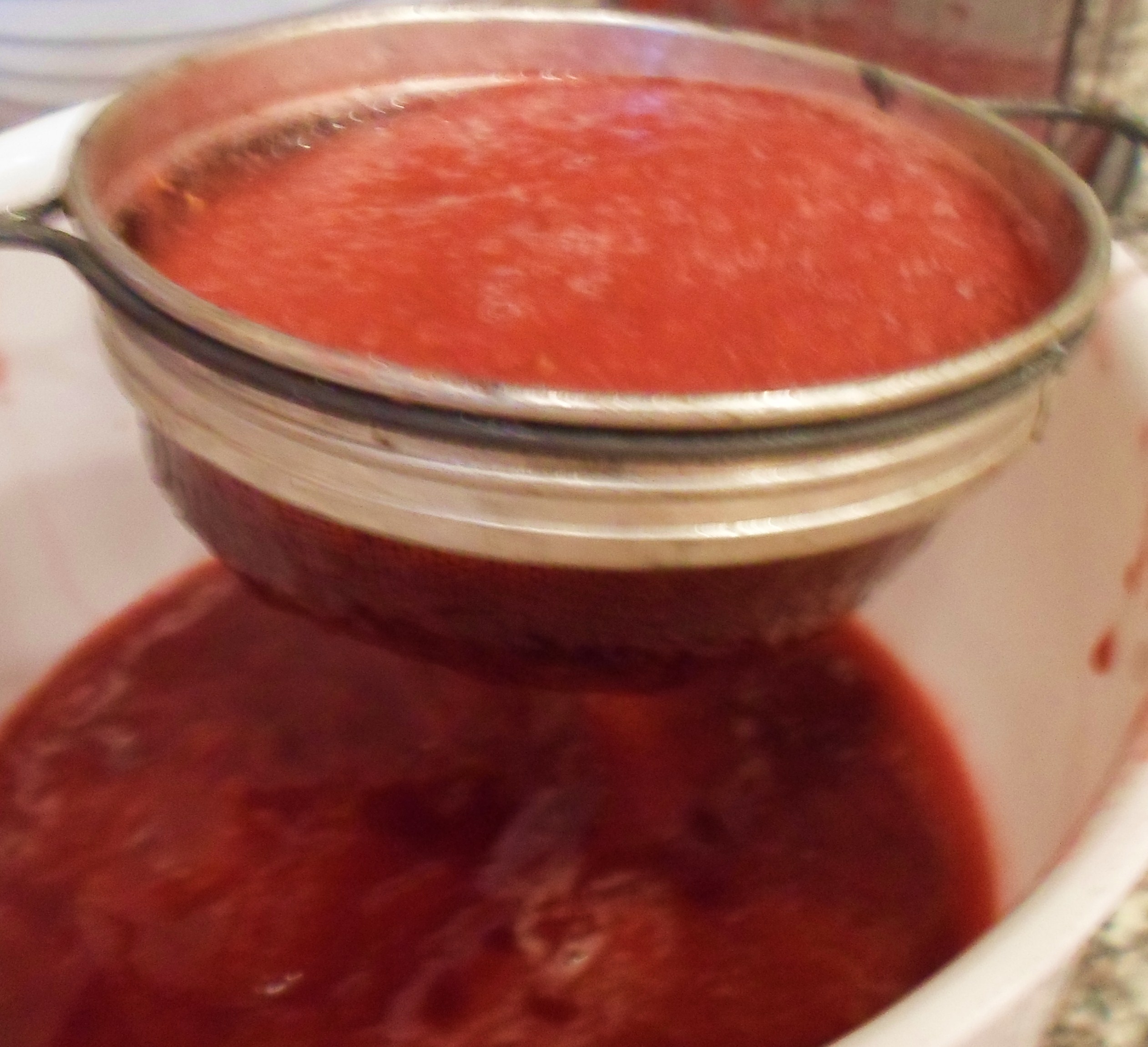 Straining juice, occasionally scrape bottom of strainer with spatula, and tap it on the side of the bowl to help juices escape more quickly.