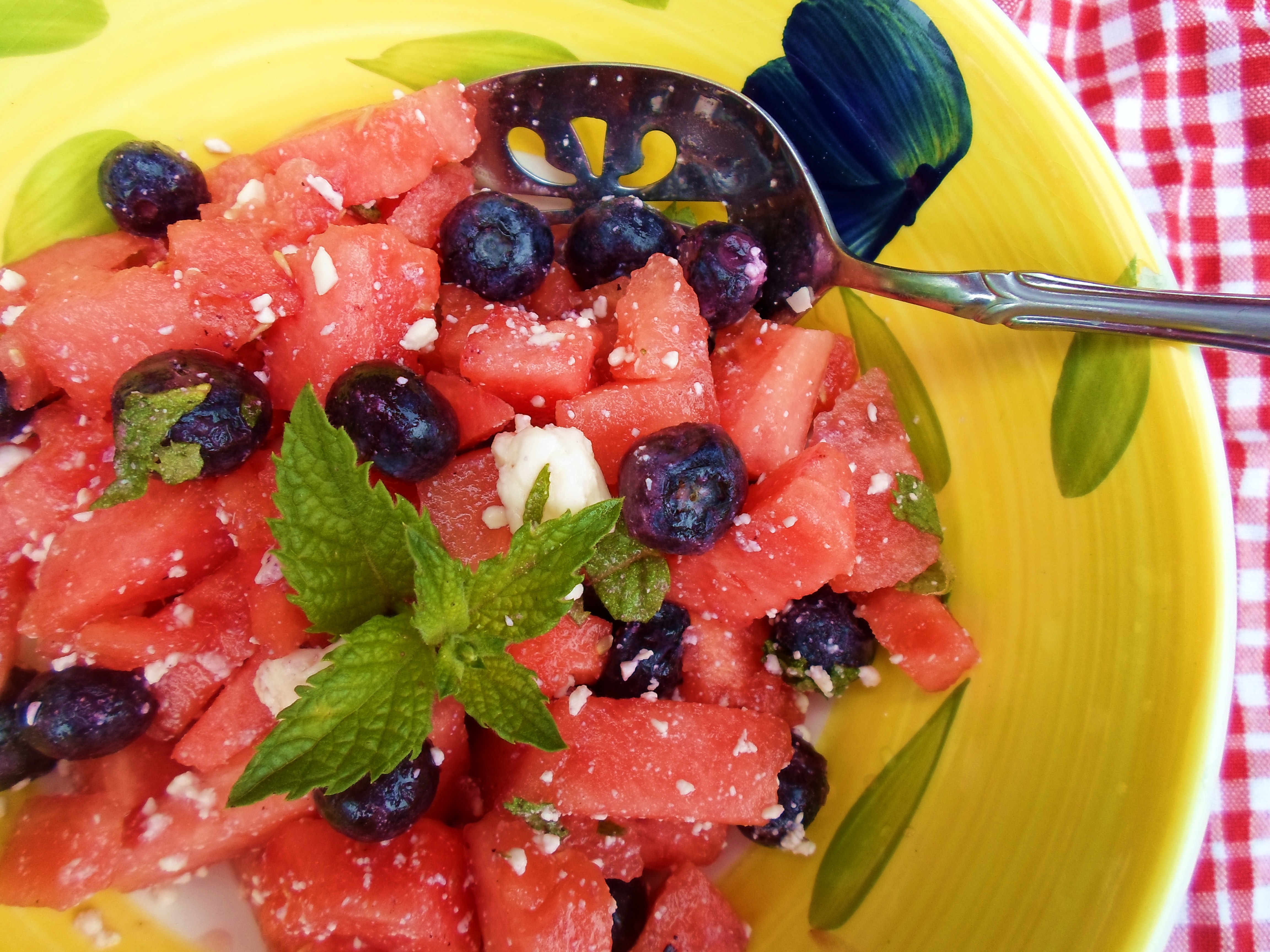 Red, White & Blueberry Salad (Watermelon, Feta and Blueberry)