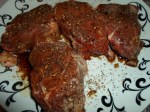 Put a tablespoon of bbq sauce and a tablespoon of green chilis on top of each steak, then put the skillet of steaks in the oven for five minutes to let finish cooking in the middle.