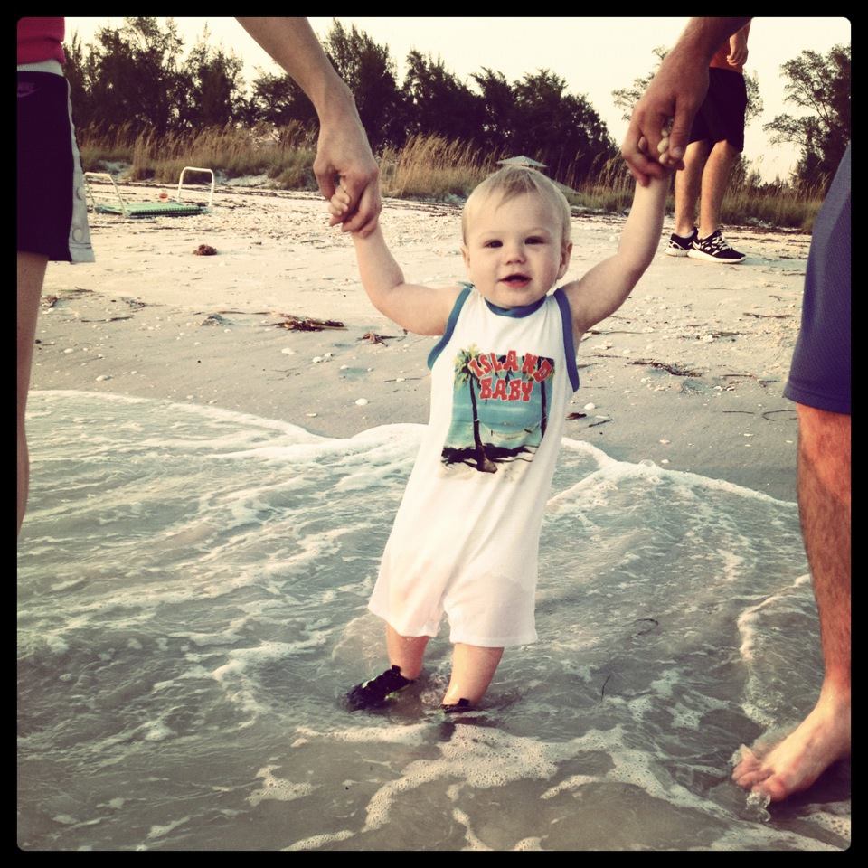 The first time our water-loving boy set eyes on the ocean, at the very same beach where Jared and I got married five years earlier.