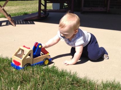 The moment I realized my baby was turning into a little boy, as he instinctively made “vroom, vroom” noises while pushing his Tonka truck into the “rough terrain.” Shortly after, to my horror, he ate a rolly polly, driving it home that he was indeed all boy (and possibly not a vegan).