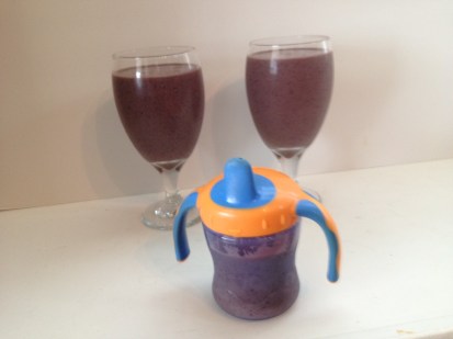 (Note: I add a little more milk to Jackson’s so it is easily sipped through a sippy cup.)
