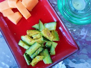Posted: August 20, 2012 Filed under: Appetizers, Asian Dishes, Sides, Uncategorized, Vegan, Vegetarian, Veggies | Tags: avocado, cucumber, salad, sesame 9 CommentsMy sister and my nieces, Whitney and Tori, age 9 and 11, are here this weekend and we are enjoying them so much! The youngest one, Whitney, is quite the food connoisseur, and has made me feel like the best cook on the planet with her over-the-top compliments. She describes the food on the end of her fork as one would describe a fine wine, “I can taste the layers of flavor! The hint of coconut, the tang of pineapple…”