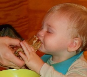 Rachel brought Jackson to the Food Bloggers Convention. She’s raising him in the kitchen, letting him teeth on measuring spoons!
