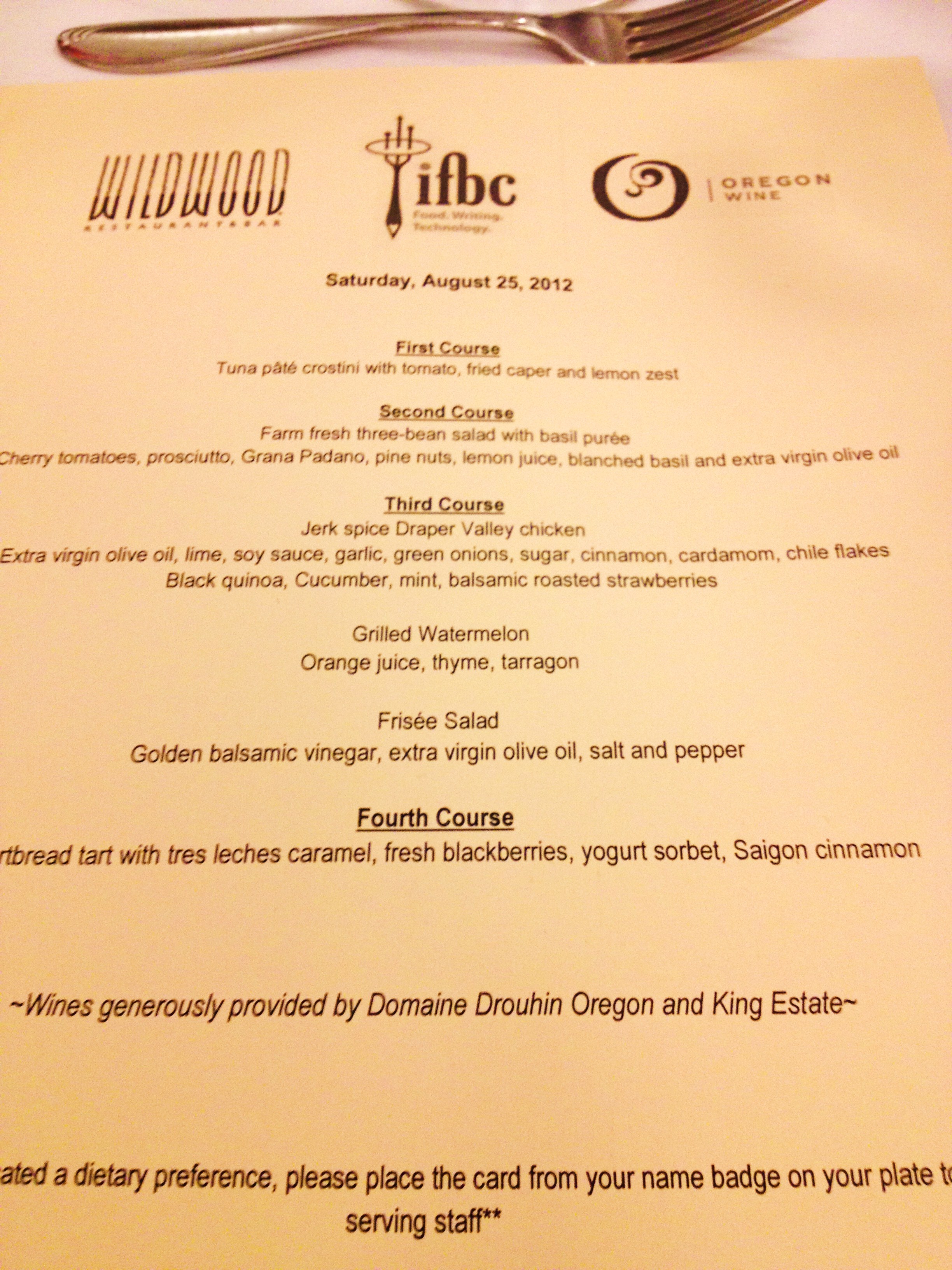 I’m not a fan of mingling, so I took a deep breath to suck in all the courage in the air, then entered the huge, elegant wine tasting party bustling with eager bloggers. Pausing near the door, I bravely introduce myself to a cheerful foodie. We exchanged business cards, just before someone informed me I was leaning on the light switches and had turned off all the lights in the room. I smiled weakly, and headed straight for a table of pinot noir, sipped a bit too eagerly, and began to choke so badly that I had to exit the room to the hallway to finish my coughing fit in private. When I looked up, there were two friendly and colorful conferees there, both offering to give me the Heimlich should I need it. Serendipitously, they turned out to be two of my favorite people at the conference. Some people, I hear, gracefully meet and greet their way around a room full of new people. I found that turning off all the lights, then choking and running out in the hallway also works as an attention-getting alternative.