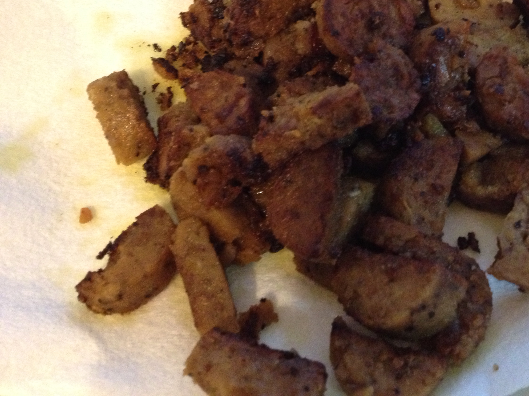 2 links of Field Roast Apple Sage Sausage (or your choice of sausage), sliced into bite size pieces