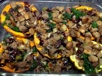 The Title: Apple, Sausage and Kale Stuffing in Golden Squash “Bowls”
