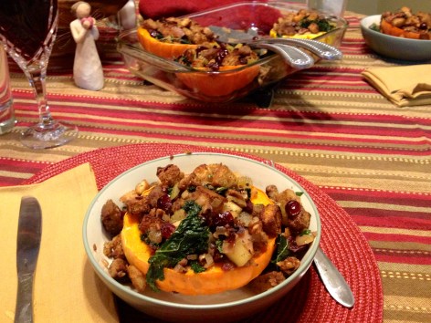 Apple, Sausage and Kale Stuffing in Golden Squash “Bowls”