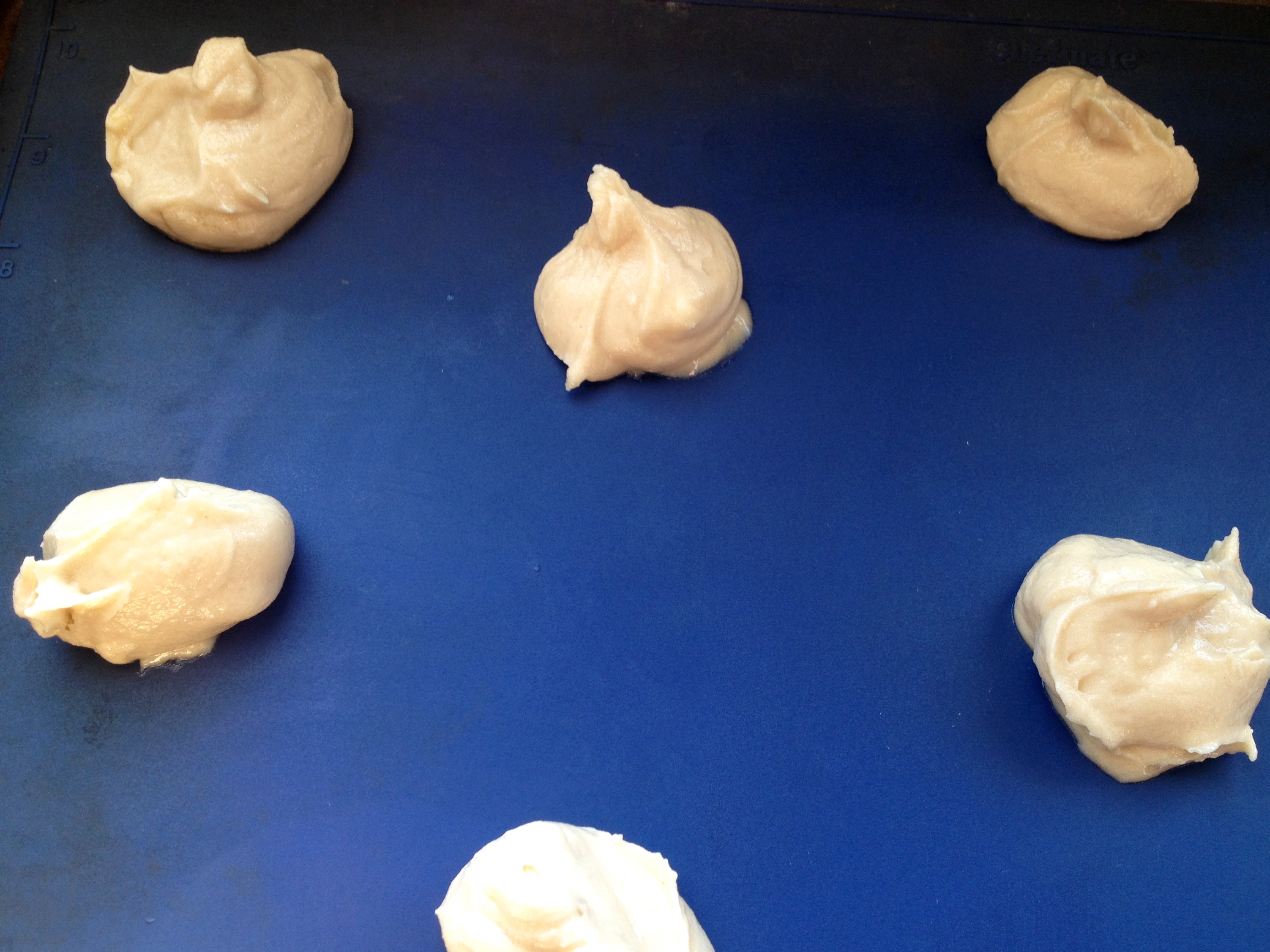 Line a pan with parchment paper or a silicon baking mat and scoop out tablespoon size drops two inches apart.