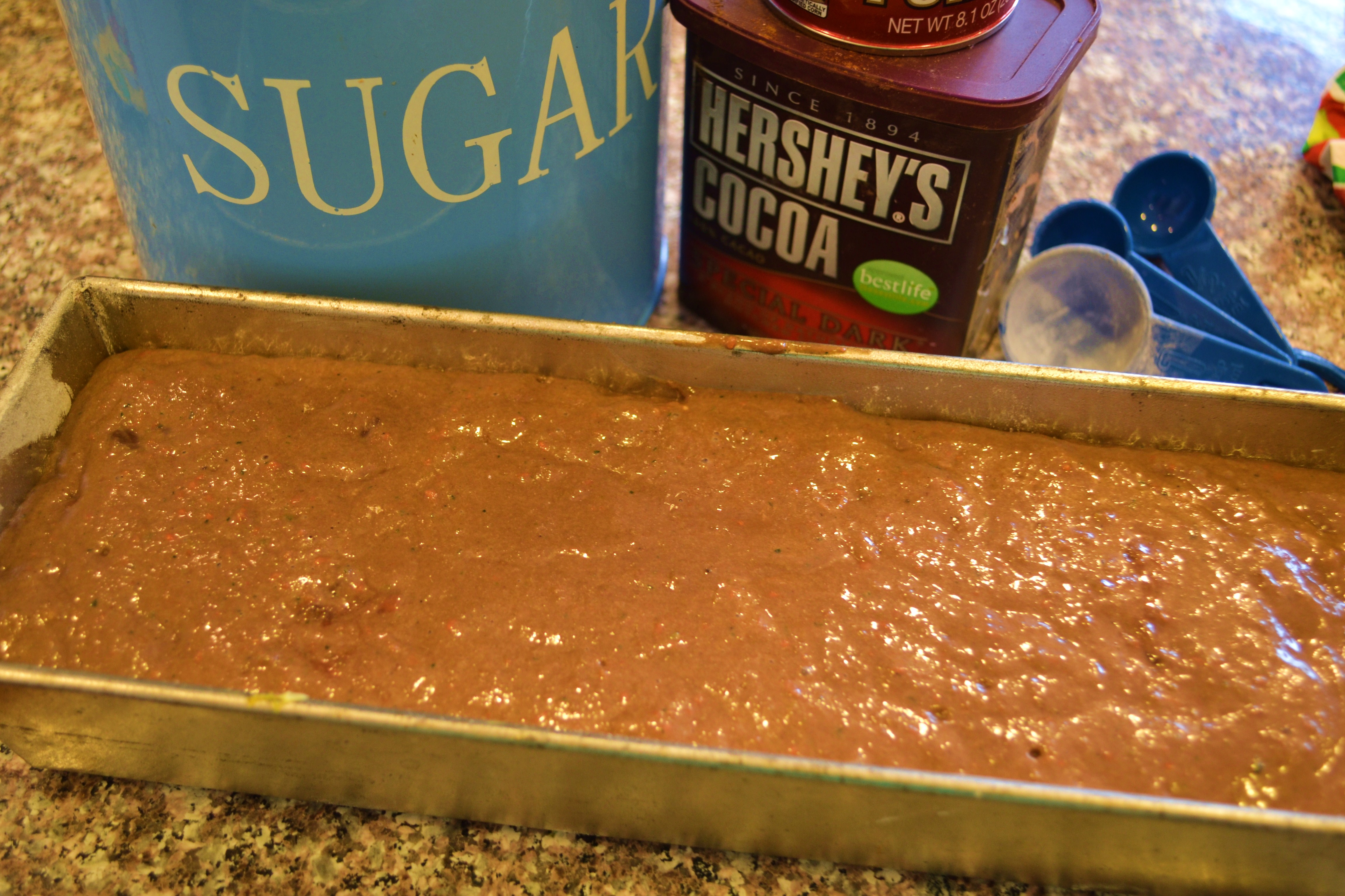 2 T. Hershey’s dark cocoa powder (you can use regular cocoa as well, just won’t be quite as dark a loaf)