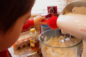 Georgie, my helper, adding honey to the batter
