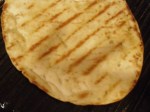 Using a grill pan and a little olive oil, grill the Naan bread on both sides until it is crispy and has light golden grill marks. Set aside on a heavy duty cookie sheet or clay pizza pan.