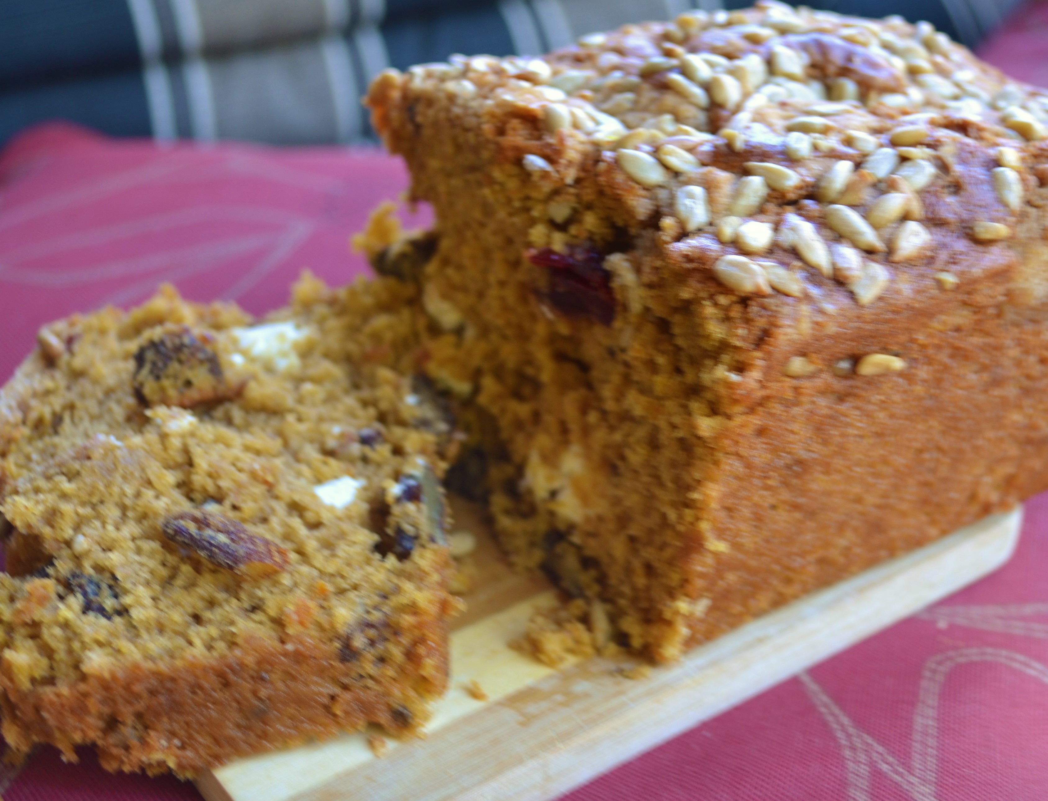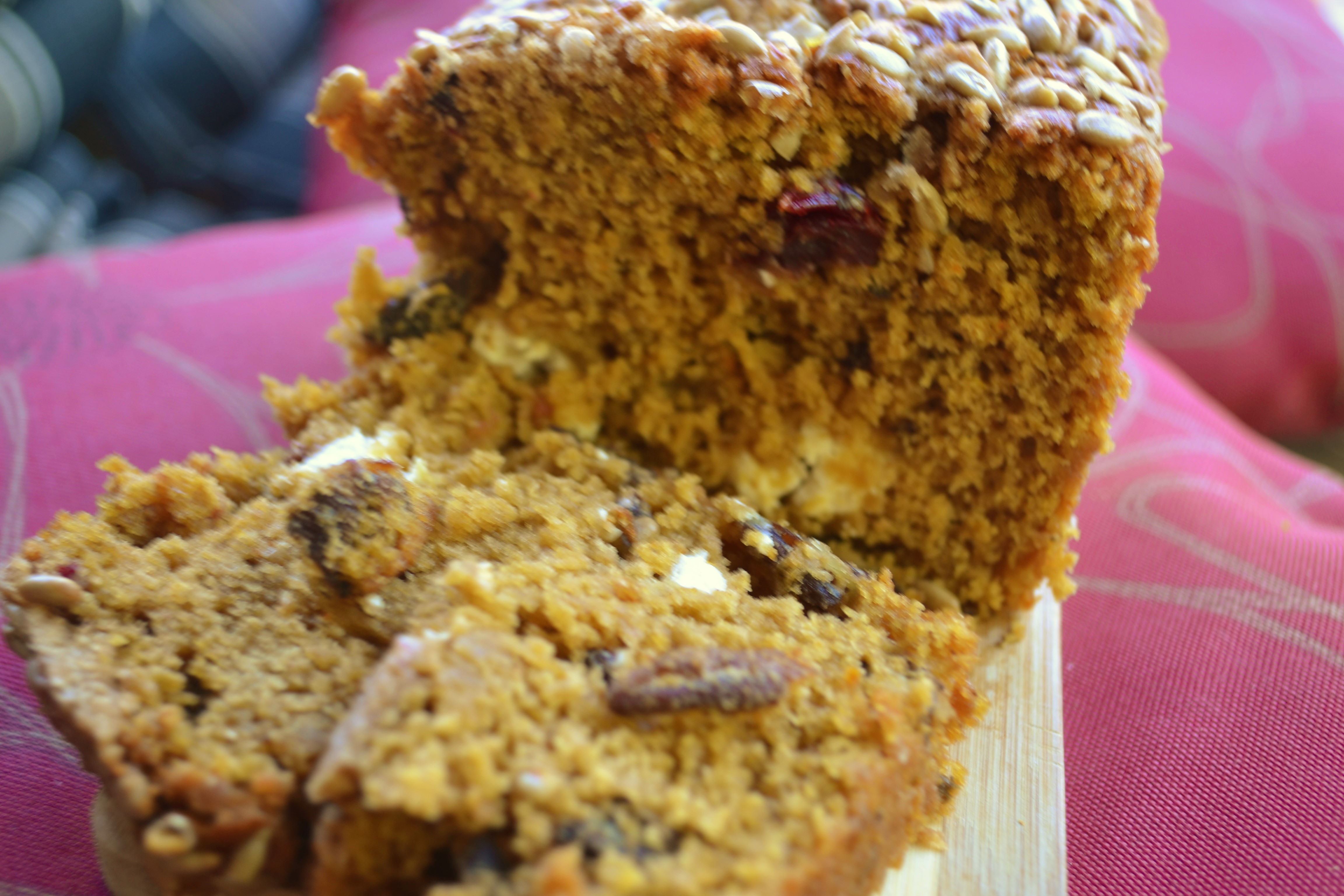 Ultimate, Everything Pumpkin Bread (with cherries, nuts, sunflower seeds and cream cheese)