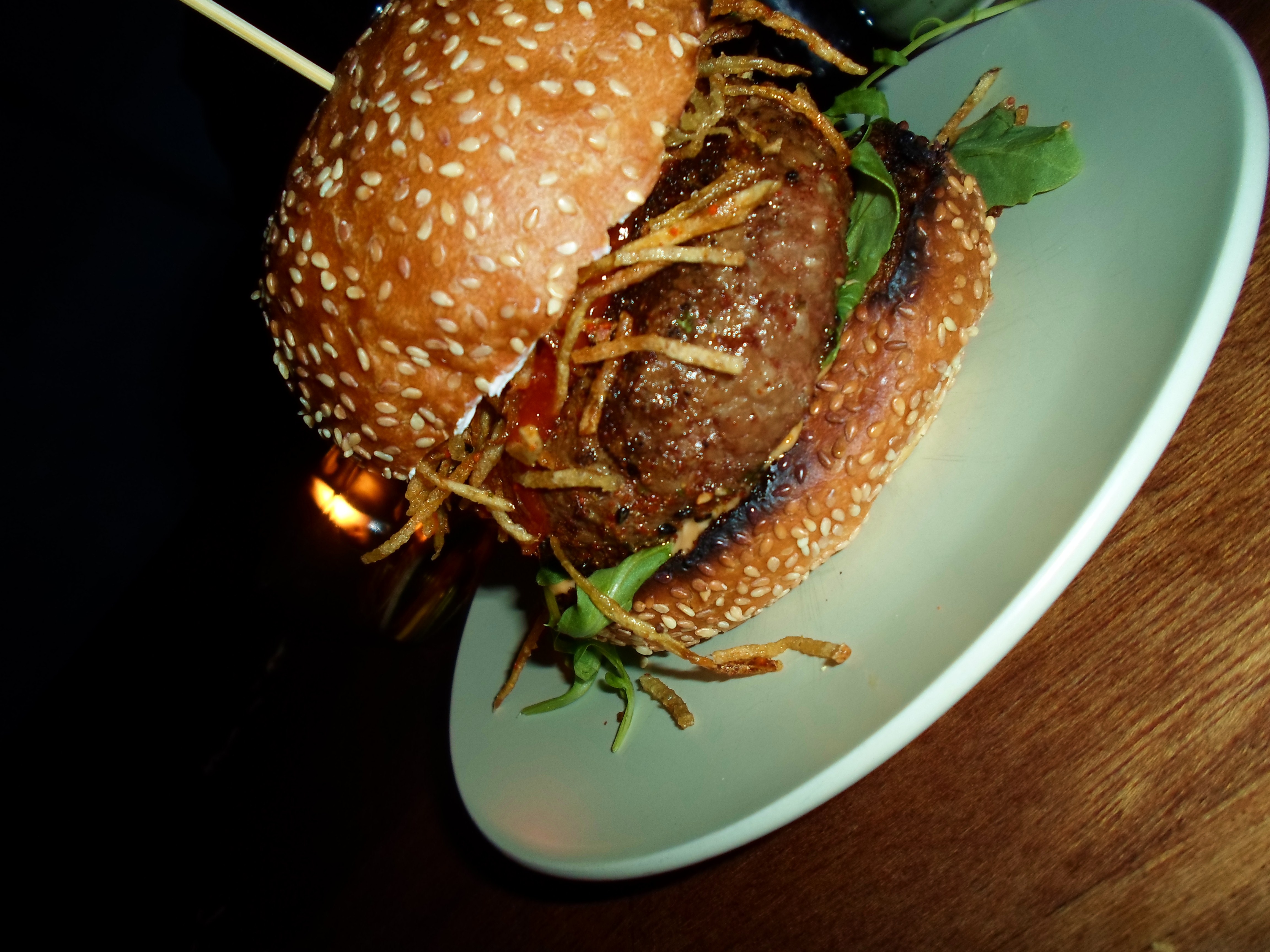 The arrival of the hamburger sealed the deal. We were told that the meat was from pampered Kobe cows. To our shock, the chef only cooked it one way: rare. We are not rare meat eaters, but the waitress assured us this was unlike any rare burger we’ve ever had. The chef grills it and then covers it to let it sit for 20 minutes. This renders the beef pink-ish red but has no blood, no raw taste. It is served with a local chevre, crispy straw potatoes doused in truffle oil, and sesame brioche buns. We closed our eyes to the color of the meat, took one bite and both grinned like idiots, eyes rolling again. Seriously the best burger I’ve ever tasted and Greg would agree.