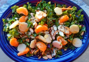 Fruit & Almond Kale Salad with Clementine-Maple Dressing