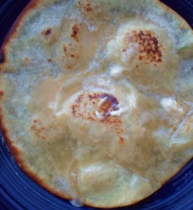 The beautiful thing that happens when these uncooked or semi-cooked tortillas hit a very hot skillet with a little olive oil/butter is that they puff up, very much like a big sopapilla. Only without all the work and the frying. My favorite version of these tortilla sopapillas is simple. After cooking I quickly slather it with a little butter, honey, a squeeze of lemon or lime, and light sprinkle of raw sugar. To eat it – you can tear it up in little pieces; roll it up enchilada style; or cut it in fourths, bending it in half, and eating it the way Italians eat flexible pizza.