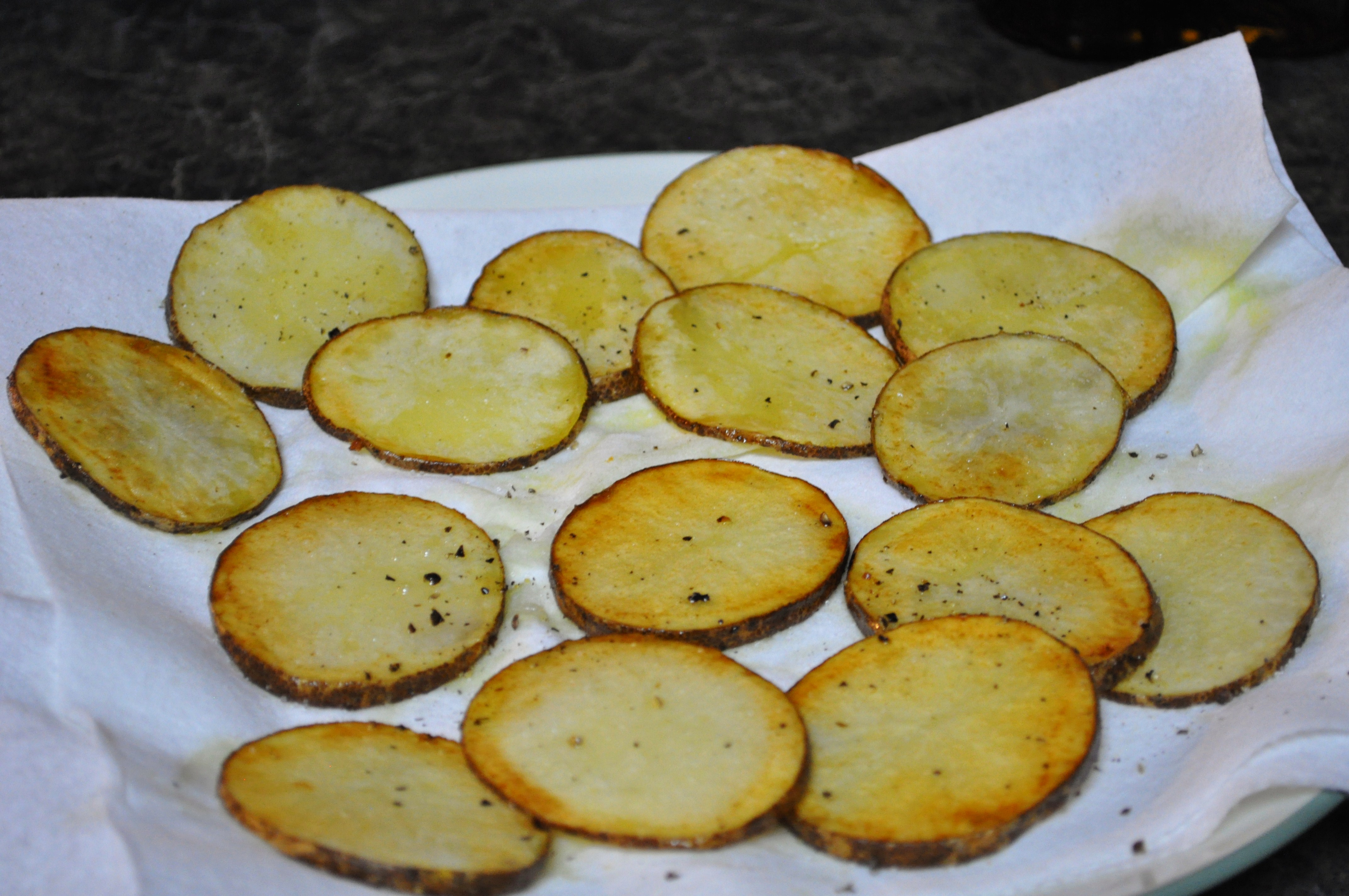 1 russet potato sliced thin (about a 1/4 inch thick–you want about 12 rounds or 3 per serving)