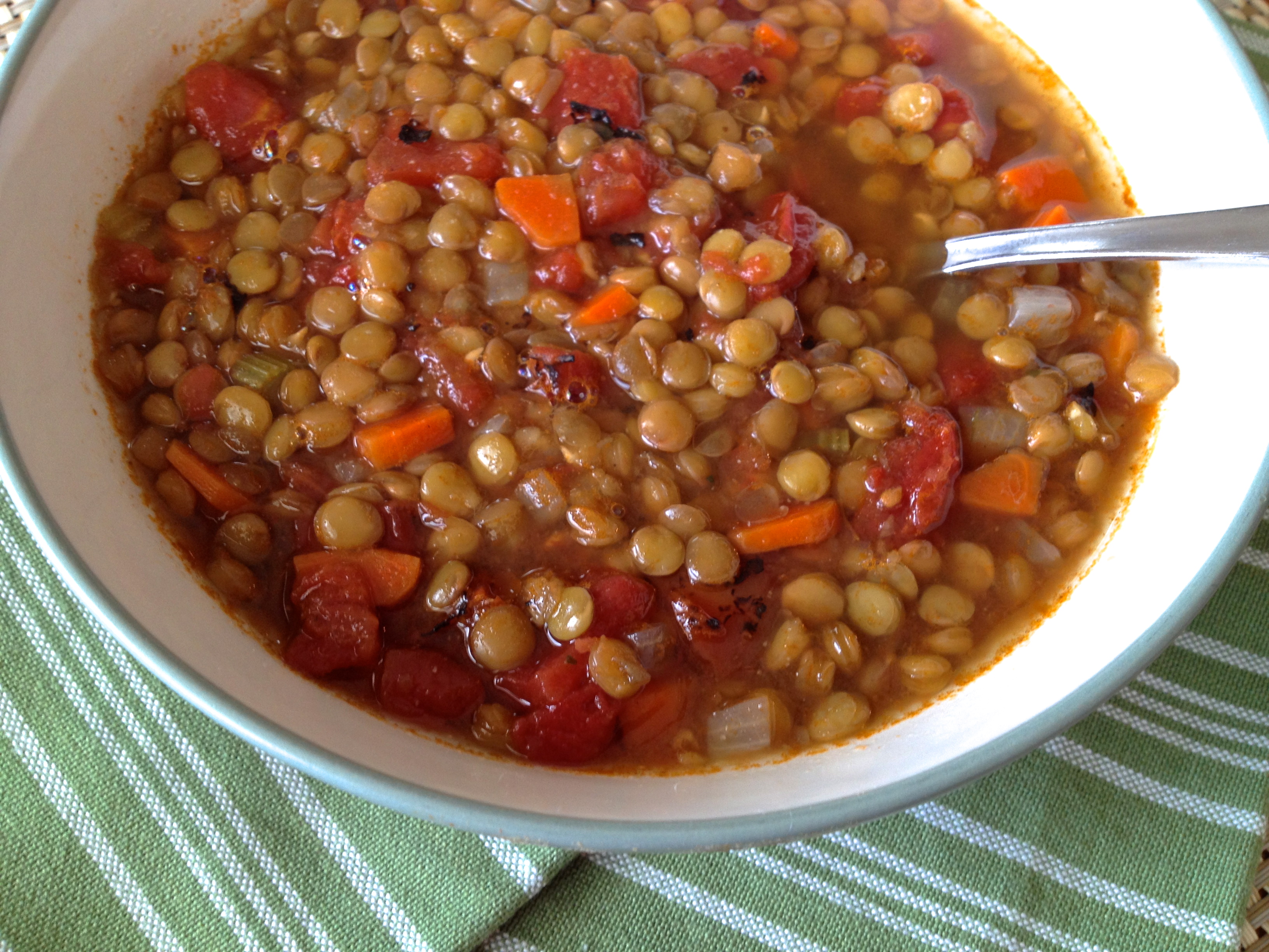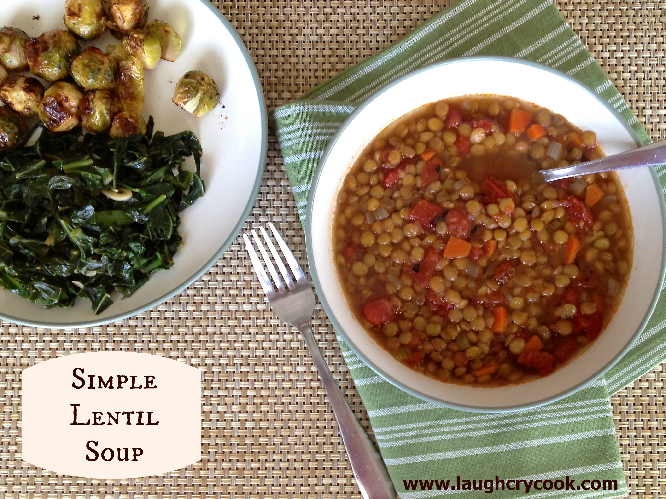 With my sister-in-law Julie heading back to the house with the boys and Greg (mom’s husband) on his way home, we quickly transitioned from top models to cooks in the kitchen. Mom was going to run to the grocery store to get fixins for Messy Greek Sandwiches and Reubens and I’d get started on some kind of soup to go along. I rummaged through her pantry and held up a bag of lentils, “How about lentil soup?” “Perfect! I’ve had those lentils for months and wasn’t sure what to do with them,” she admitted. “Oh it’s so easy,” I told her. “It takes no time to get started and will be finished simmering by the time you’re back from the store.” Mom headed to the grocery store and I got started chopping onions and carrots. By the time Julie walked in with Jackson and George, I had the soup covered and simmering, happy to step out of my author/foodie hat and into mommy and auntie role again.