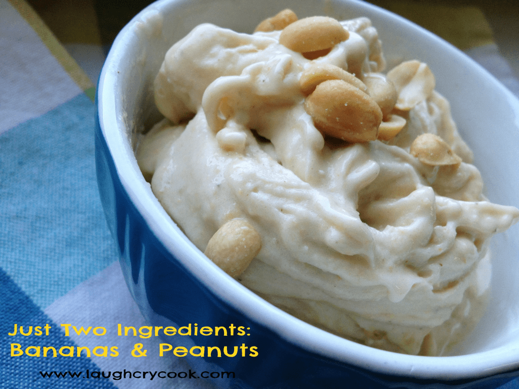This idea for banana soft serve has been circulating for years. It’s not new, but I’ve turned a few people toward it this week with my Instagram picture of Jackson enjoying his morning ice cream treat and thought maybe some of our readers have yet to try it as well. The basic recipe is just frozen bananas processed in a blender. It’s magical! The bananas just whip right into a thick creamy soft serve that is delicious on it’s own. You can make all sorts of flavors: chocolate peanut butter, strawberry banana, cinnamon and sugar…wherever your taste buds take you. This version is one of my favorites. You can use peanut butter instead of peanuts, but I really love the texture and flavor from the whole peanuts.