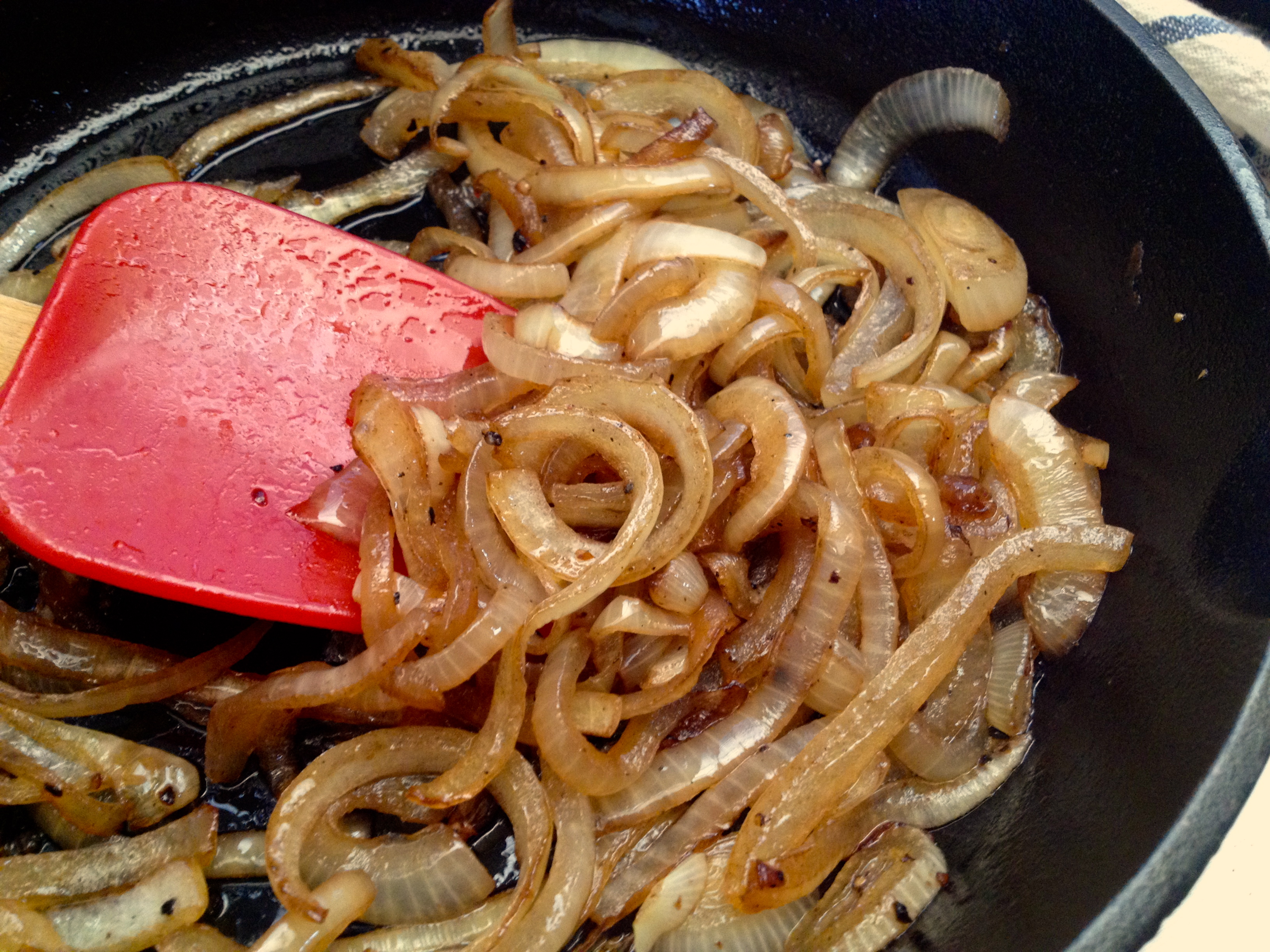 Balsamic Caramelized Onions — you can actually cook down more than this if you have more patience than I do (or don’t have a whiny toddler at your feet testing every patient bone in your body :))