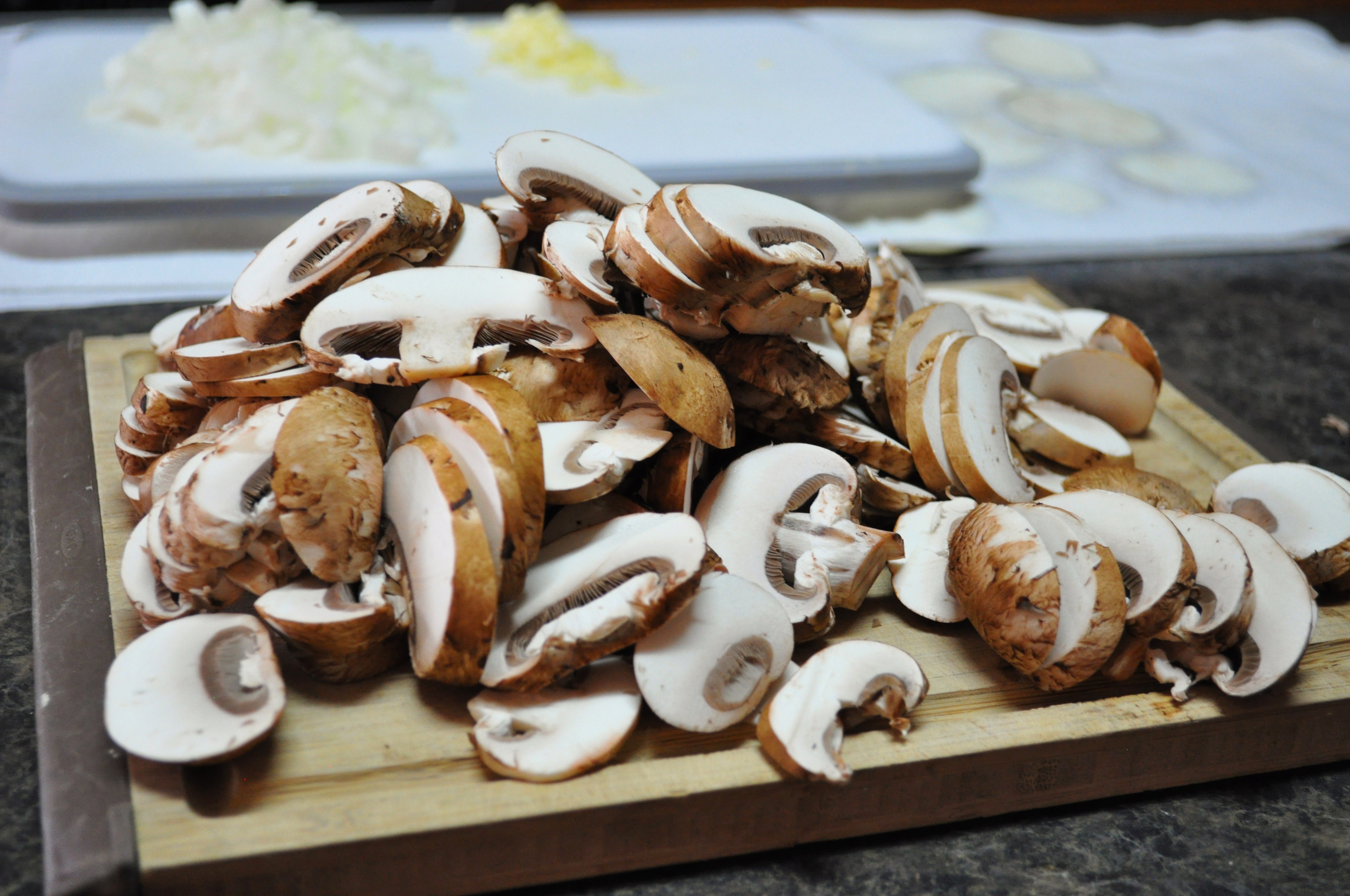 Heat a large skillet (preferably heavy stainless steel or iron) on medium high heat. Add Earth Balance and olive oil and let it heat up. Add mushrooms and cook until they’ve browned and shrunk quite a bit in size. Stir in onions and garlic, reduce heat if needed so garlic doesn’t burn, saute for 2-3 minutes until soft. Pour in 1/2 cup of wine and scrape up all the brown bits on the bottom of the pan. Stir in one tablespoon of flour and slowly add the rest of the wine and veggie broth. Cover and bring to boil. Reduce to simmer, remove lid and simmer until liquid is reduced to about half. If it’s not thick enough, stir in a little more flour and keep cooking down. Season to taste with salt & fresh cracked pepper. Stir in pasta noodles and cover to keep warm.