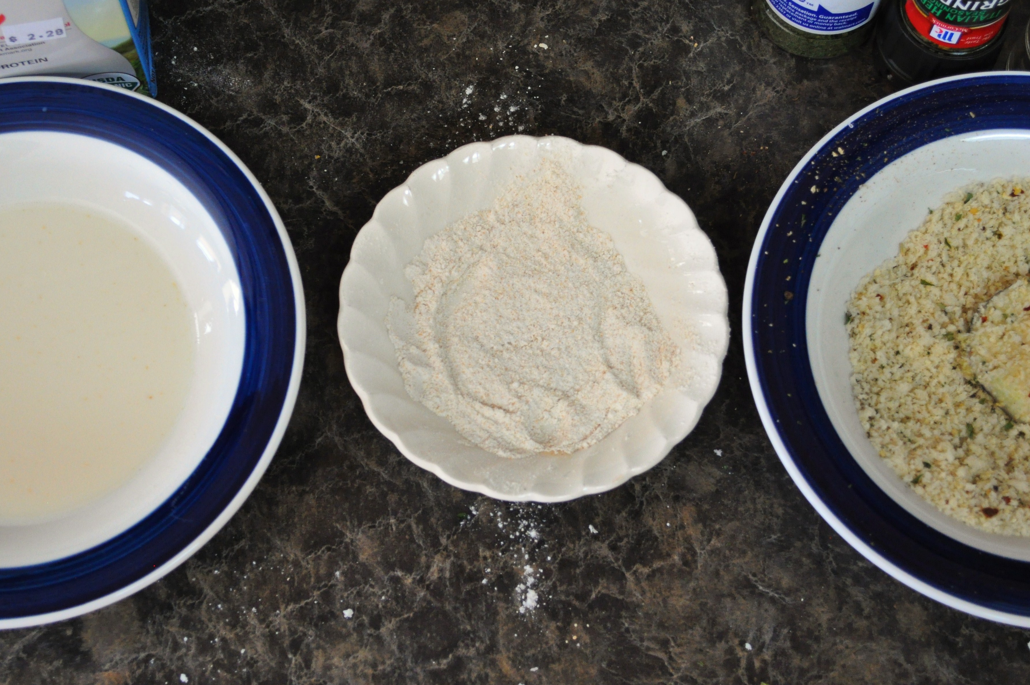 2 cups Panko bread crumbs seasoned with 1 teaspoon Italian Seasoing, 1/2 teaspoon dried parsley, and a little salt & pepper)
