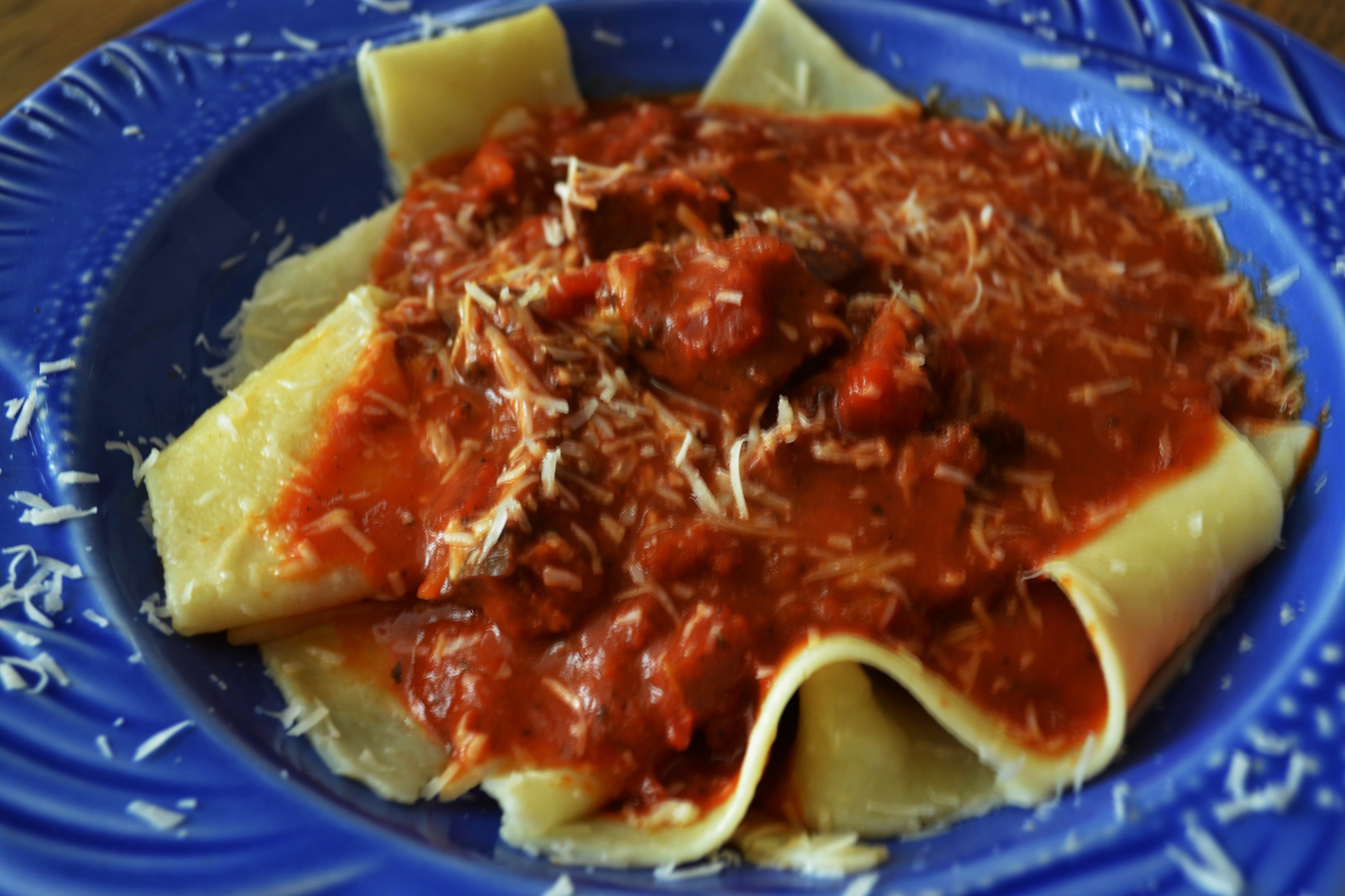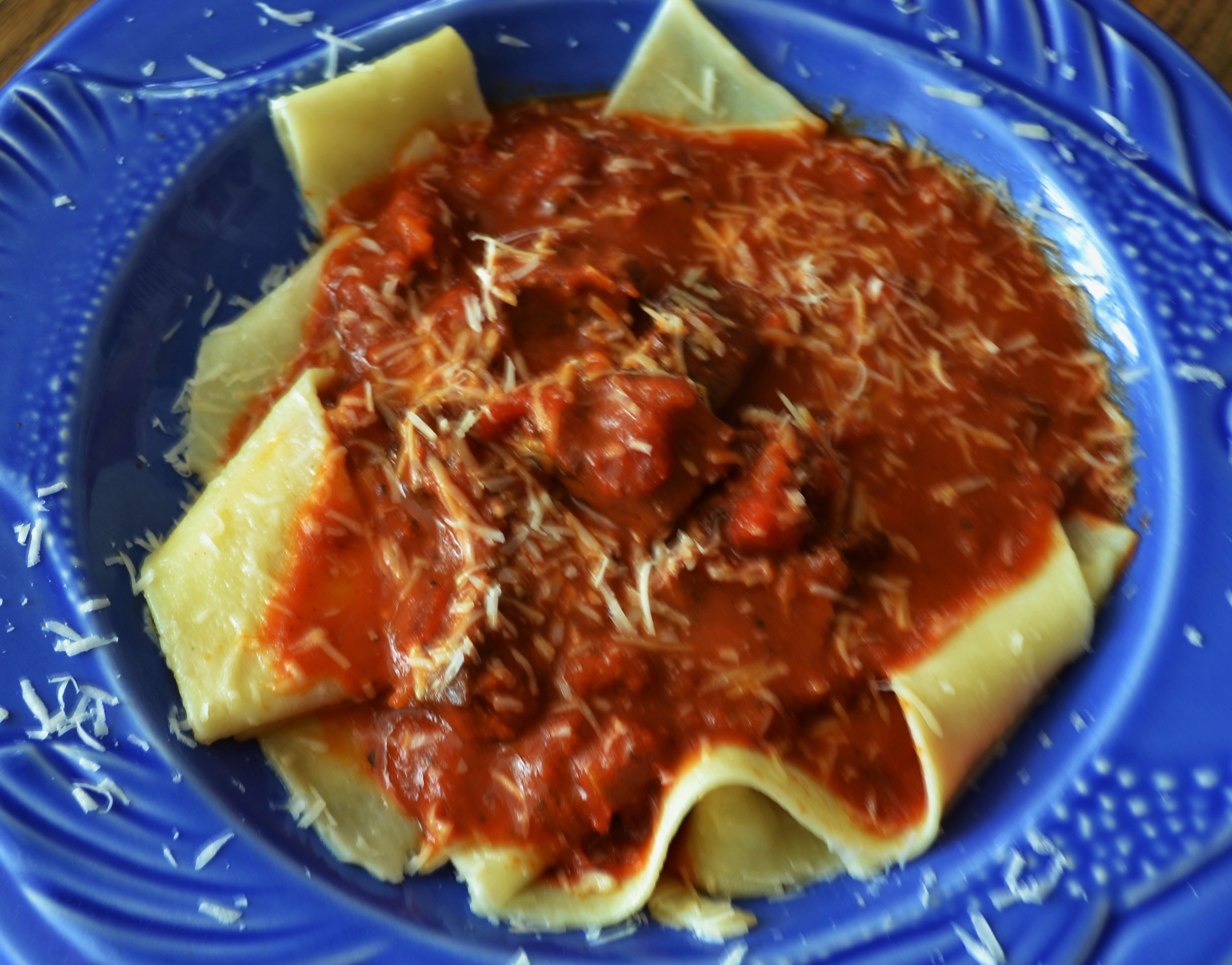 Posted: June 12, 2015 Filed under: Italian, Main Dishes, Pasta | Tags: cream cheese, garlic, marinara, meat, Pappardelle noodles, pasta, pot roast, steak, wine Leave a comment(Becky, the Mama.)
