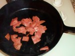 While the pasta is cooking (according to package directions), chop the salami and render out the fat in a skillet until it has crisped a little.
