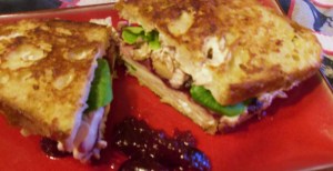 Posted: April 9, 2012 Filed under: Main Dishes, Sandwiches, Uncategorized | Tags: chicken sandwiches, cranberry, cream cheese, ham sandwiches, monte cristos, walnut Leave a commentIf you, like me, served a big bunch of family and friends a large Easter dinner yesterday, then I declare tonight to be “Cook’s Night Off!” If, however, like me, the thought of getting dressed, driving to a restaurant, and making polite conversation with other human beings sounds like it would take more energy than you currently have leftover, this AMAZING and easy sandwich recipe will help you get out of the kitchen and onto the comfy couch quick.