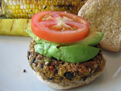 Sweet Potato Black Bean Burgers with grilled pineapple and corn on the cob, hits the spot after a day at the pool.