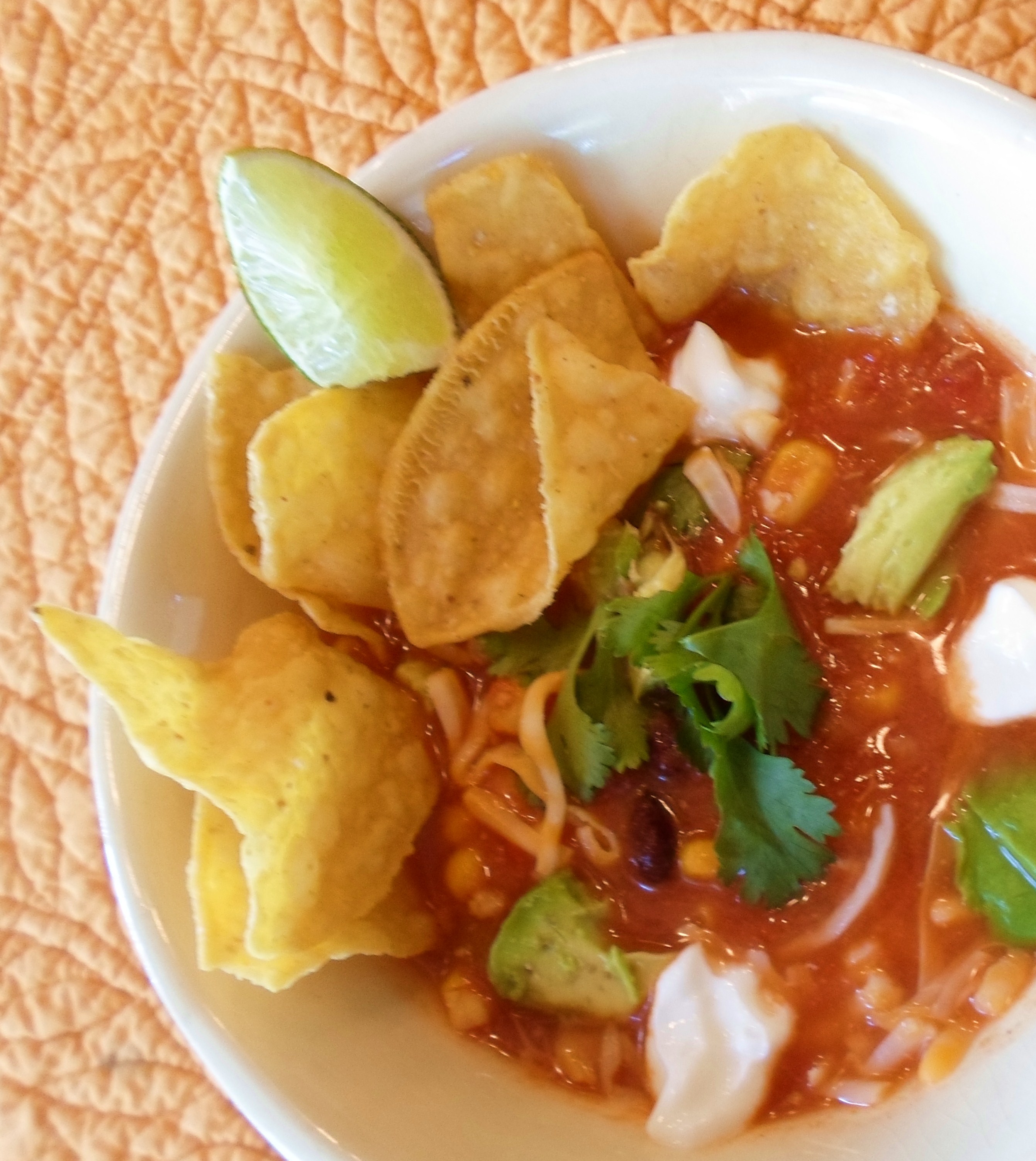 I threw this soup together for a friend who dropped by unexpectedly for lunch one day, and she swore it was the best soup she’d ever tasted. Could not believe I whipped it up in just a few minutes. Plus it was ready to serve by the time our grilled cheese sandwiches came off the stovetop.