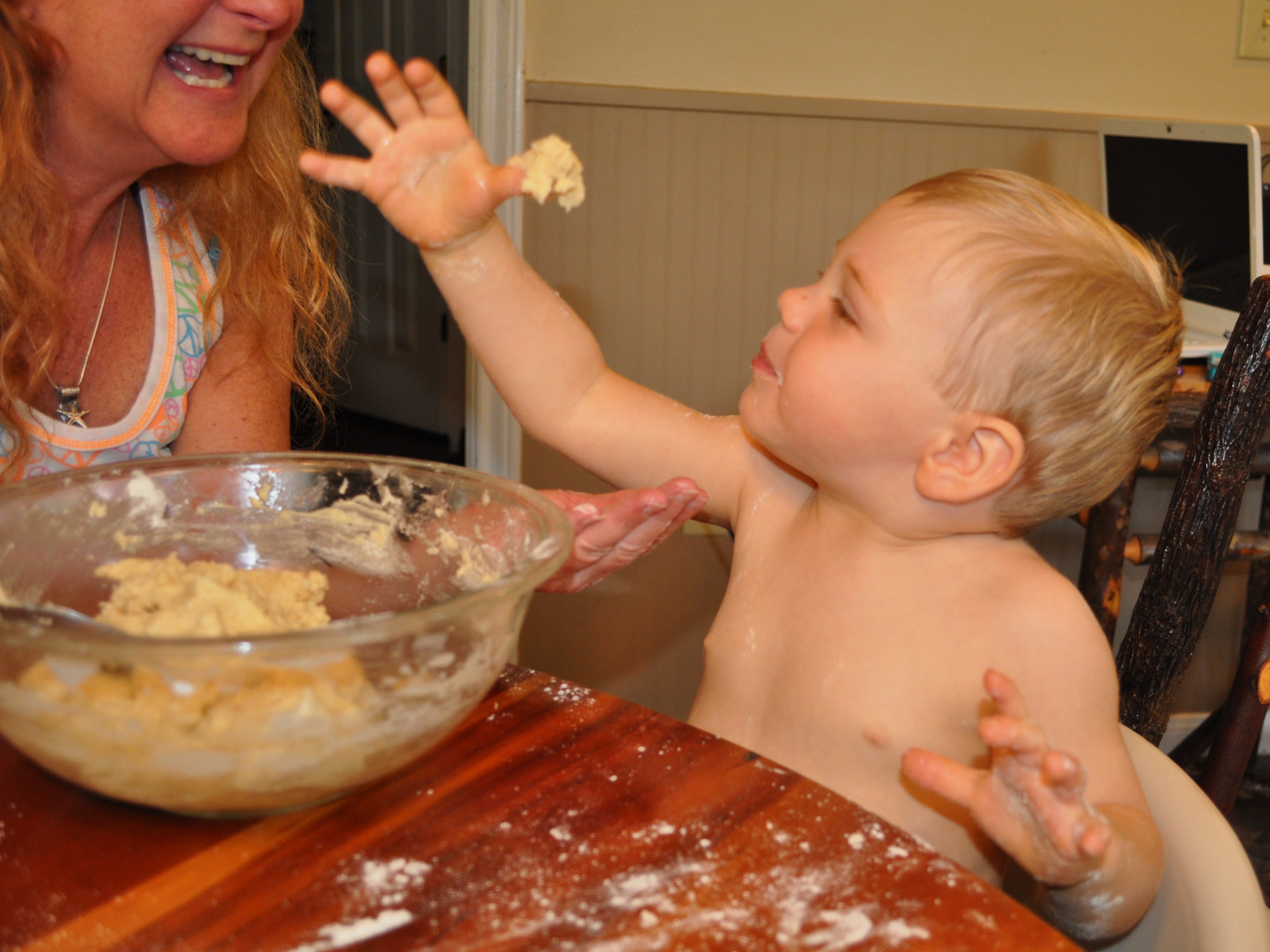 Cooking with kids is neither neat or orderly. Luckily this dough is soft, pliable, and forgiving. Just roll it back up and press it down again to start over.