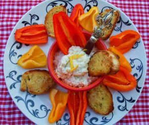 Use the recipe above, but add 2 T. plain Greek yogurt. Stir and serve with crisp veggies and crostinis