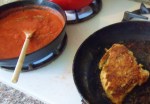 3 cups marina, your favorite brand or homemade (I whirl 28 oz can crushed tomatoes in a blender with garlic, 1/4 onion, handfull of basil, dash red wine, 1 t. oregano, 1 T. brown sugar, 1 t. salt — simmer a few minutes and call it marinara.)