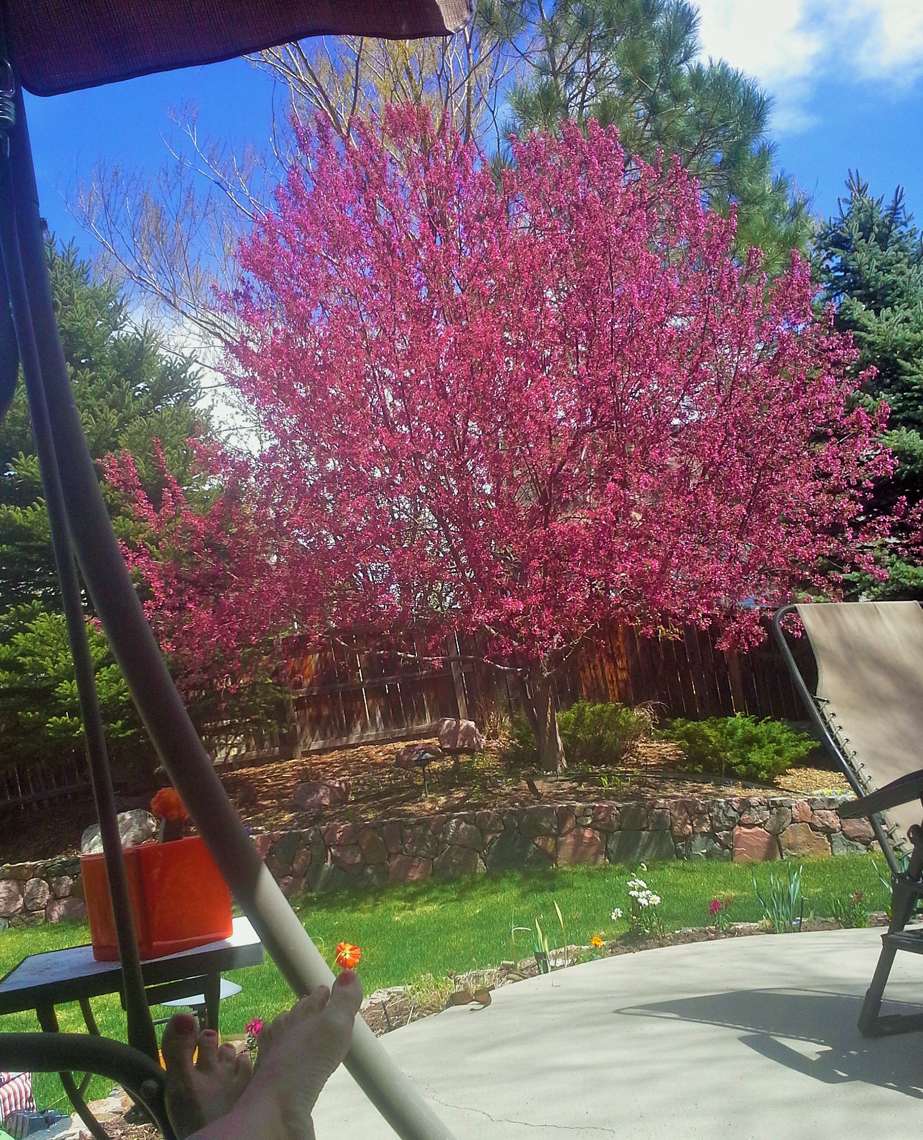 And then, in due season, new buds, verdant green, pink blossoms … Spring. That feeling of something beginning, growing again. Bearing fruit, sharing the bounty and shade of your presence with others.