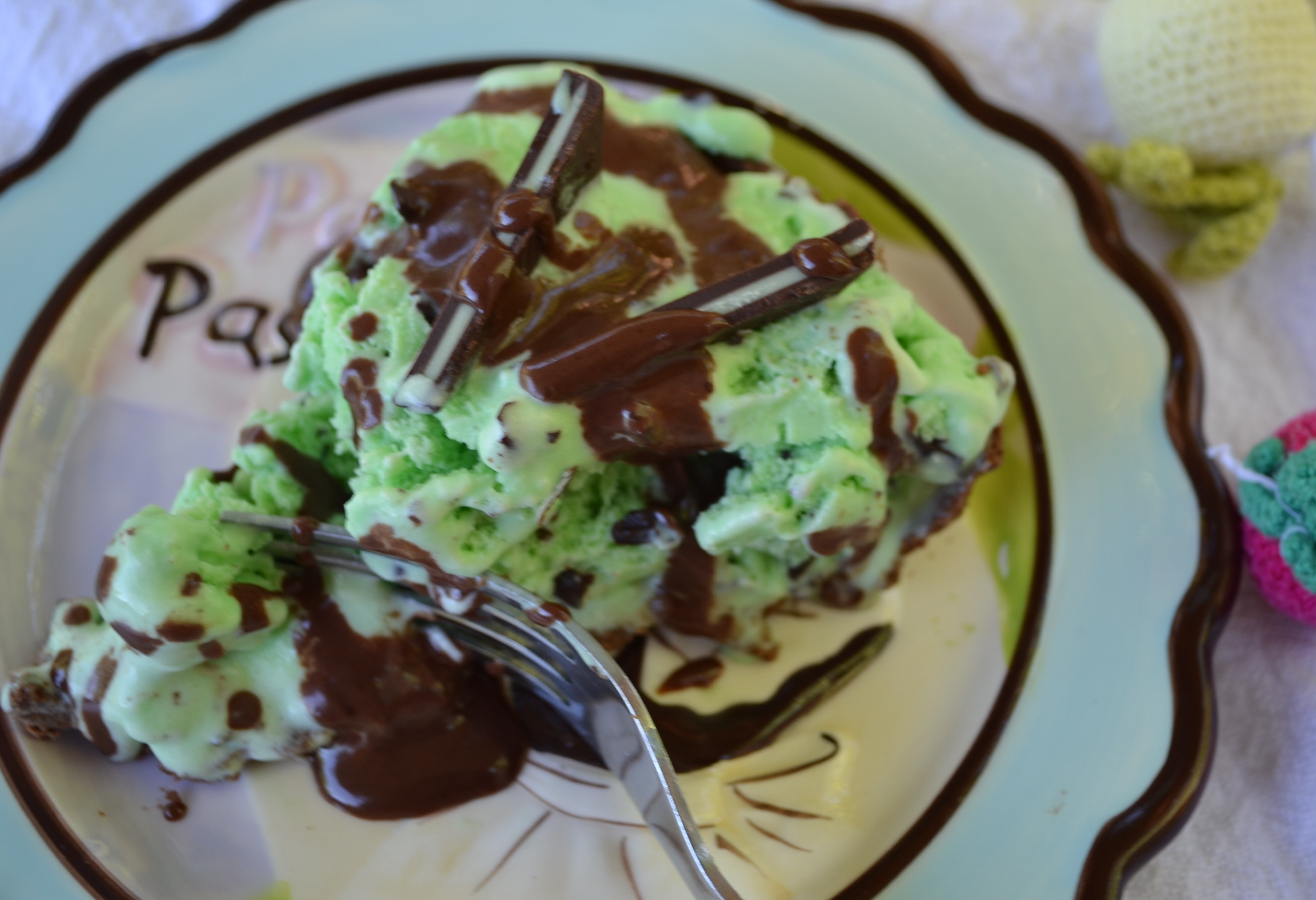 Posted: July 18, 2013 Filed under: Desserts, Uncategorized | Tags: Andes mints, chocolate, chocolate sauce, fudge, fudge sauce, ice cream, mint, mint chocolate chip ice cream pie, pie, warm 5 CommentsThis week marked our wedding anniversary. I asked my six-year-old grandson George if he’d like to help me make an “Anniversary Pie” for his Poppy.