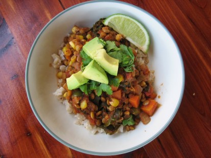 Posted: May 29, 2012 Filed under: Gluten Free, Main Dishes, Soups, Vegan, Vegetarian, Veggies | Tags: avocado, brown rice, carrots, corn, green lentils, kale, lentil chili, lentil veggie chili, lentils, soup, vegan, vegan chili 4 Comments